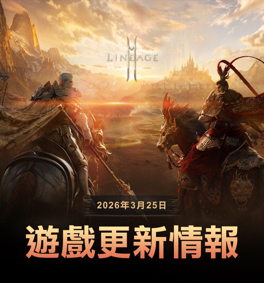 3月25日遊戲更新情報!新伺服器死亡騎士、桃園三結義、新職業新坐騎、霍洛館、職業重啟槍、血盟隊伍系統、布萊特超越、炙熱峽谷&灼熱搖籃、奈琵林斯/青龍包 2026-03-25 維修後 ~ 2026-04-01 維護前 原始情報位置:https://lineage2m.plaync.com/board/cm_story/view?articleId=69c26eb055f9741f2cd9b667