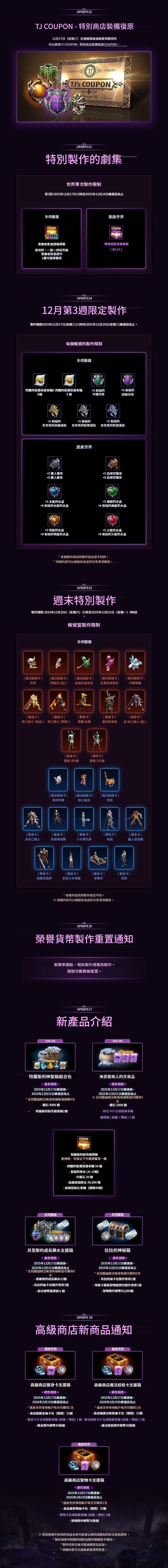 12月17日遊戲更新情報!試煉副本更新、世界首領更新、哈爾帕斯突襲&記憶之島、流浪馬戲團、金字型神塔、黃昏山脈防禦戰 2025-12-17 維修後 ~ 2025-12-24 維護前 原始情報位置:https://lineagem.plaync.com/board/cm_story/view?articleId=69413bb0ec8af2718f3f752e