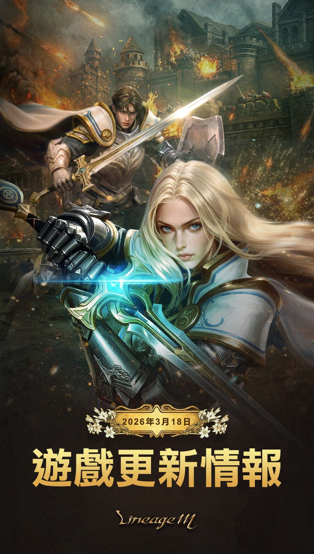 3月18日遊戲更新情報!神聖劍士重啟、拉斯塔巴德更新、飛龍討伐戰、紋樣内容更新、增益卡片追加、歐林的痕跡、技能書銷售、硬幣4種交換 2026-03-18 維修後 ~ 2026-03-25 維護前 原始情報位置:https://lineagem.plaync.com/board/cm_story/view?articleId=69b93430091d780badf85e59